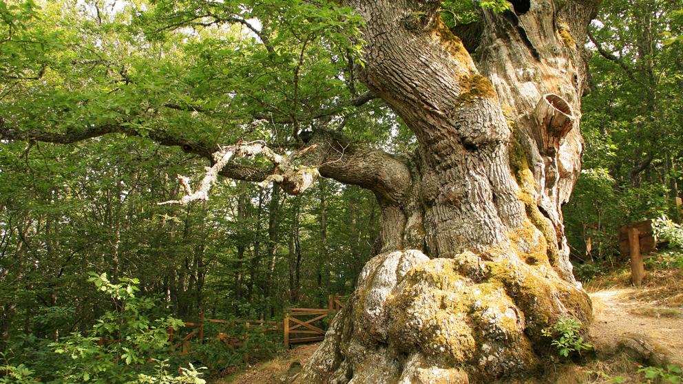 No se recomienda el uso de bicicleta por esta senda. Este recorrido te lleva hasta al “roblón” un legendario roble albar (Quercus petraea) del Monte de Estalaya, conocido como ‘El Abuelo‘, por su antigüedad y grandes dimensiones