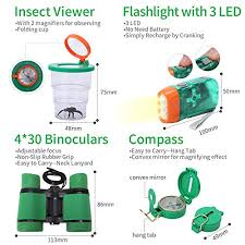 | UTTORA Kit de Exploración para Niños | -JUEGO DE EXPLORACIÓN 7 en 1 -PRISMÁTICOS 4 x 30 -LINTERNA DE MANO RECARGABLE -MATERIALES SALUDABLES | -Kit muy completo con muchos útiles. -Juguete didáctico para niños entre 4 y 8 años. -Precio asequible | -La calidad de los materiales es un poco baja -Los prismáticos tienen poco aumentos, sirven más como juguete que para ver en la distancia | VER PRECIO Y OFERTAS |