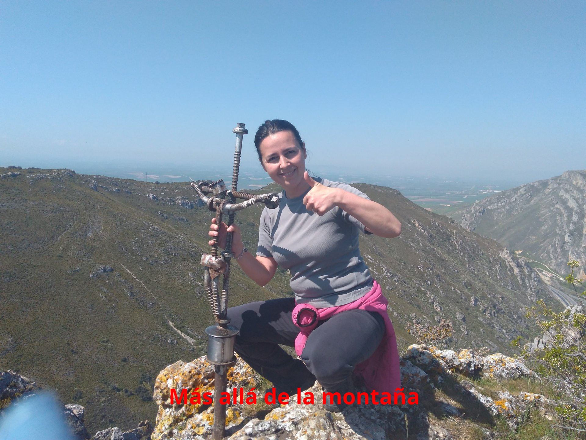 Siguiendo este último camino enseguida alcanzaremos la cumbre del Meriendillas (1003m) .La cumbre del MERIENDILLAS tiene una original cruz en su cima y se asoma al desfiladero de Pancorbo, del que nos separa un abismo de unos 400m, casi verticales.