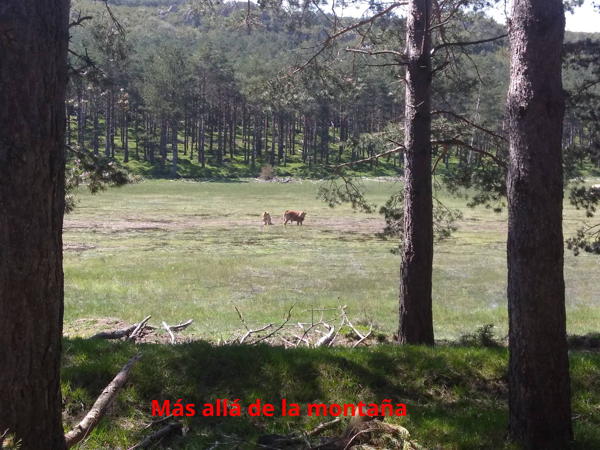 Desde la laguna seguimos por el pinar hasta un cruce de pistas, donde cogemos la pista de la derecha y seguimos por ella siempre en la misma dirección durante unos dos kilómetros hasta encontrarnos una señal de tráfico junto a la pista.