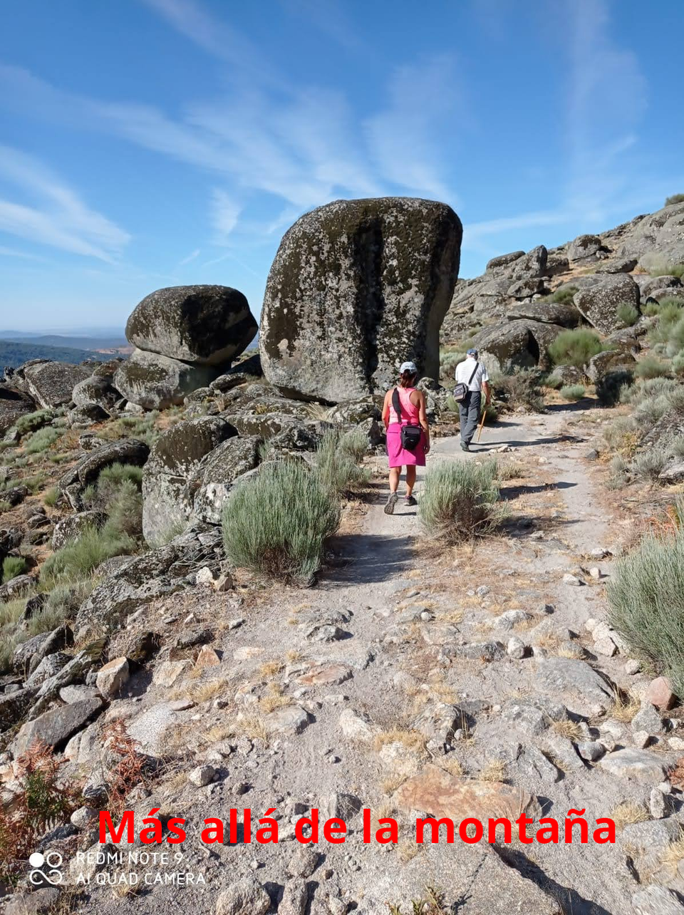 En esta zona, podemos ver como surgen formaciones rocosas con formas muy curiosas, mientras que el camino se convierte en un cómodo sendero que desciende suavemente. A los 2 km se atraviesa un bello canchal granítico y a la izquierda se contempla la bella ladera por la que se ha ascendido, así como el alto del Jálama (1.492 m).