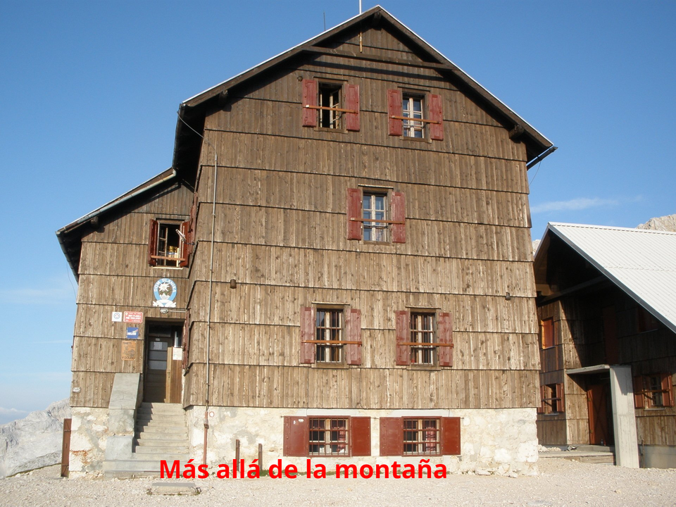 Alcanzamos el refugio Dom Planika (2400 m), donde haremos noche. Ha sido una etapa larga y cansada. El paisaje kárstico resulta sobrecogedor. Mires a donde mires no hay más que roca y más roca. Nosotros nos tomamos un piscolabis en la terraza panorámica para reponer fuerzas en un día espectacular sin nubes y sin viento. Nos lo hemos merecido!